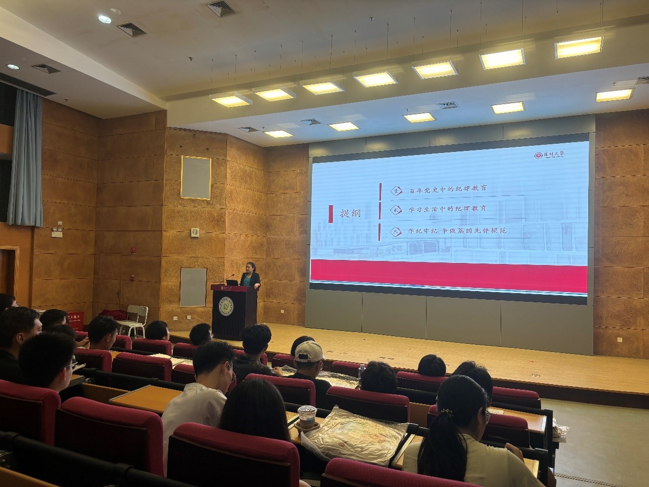 邓琳以“筑牢纪律意识 增强使命担当 争做先锋模范”为题作党纪学习教育专题讲座。她回顾了百年党史中的纪律教育,深入解读《中国共产党纪律处分条例》的主要内容,阐释了全面从严治党是习近平总书记对于党的建设思想的创造性发展。讲座中,邓琳强调学纪守纪是成长的基石、创新的保障和修身的明镜;聚焦《条例》具体内容和校规校纪,结合党员管理及学生工作经验,对一些典型案例进行深入剖析,告诫党员同学要把纪律建设和合规建设摆在突出位置,坚守六项纪律,勿跨越学术道德、考风考纪、住宿纪律等红线,严于律己、实干担当,切实把学习成果转化为提升自我、影响他人的实际成效,争做荔园先锋模范。