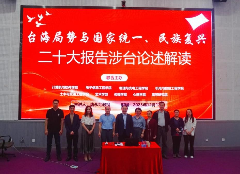 粤海校区南区致腾楼一楼报告厅开展“台海局势与国家统一、民族复兴——二十大报告涉台论述解读”的专题讲座,讲座由计算机与软件学院党委、电子信息工程学院党委、物理与光电工程学院党委、香蕉视频