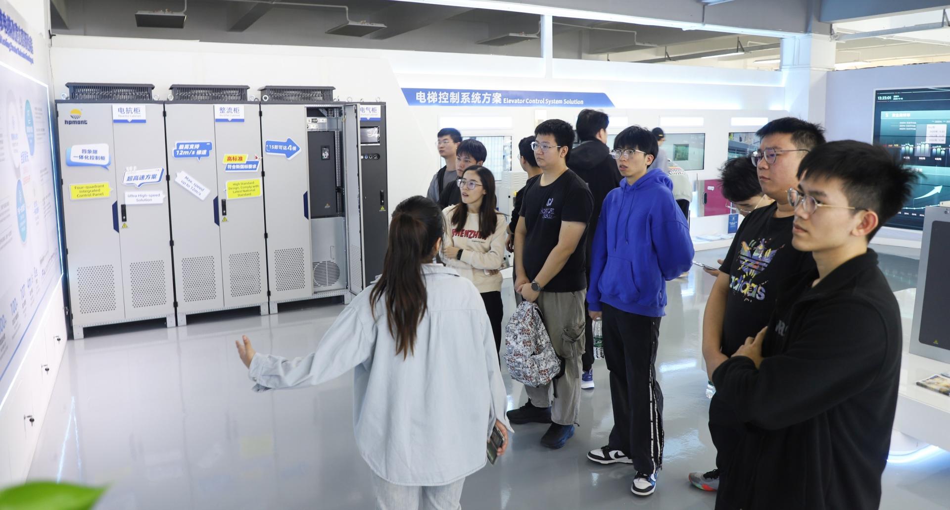 海浦蒙特科技有限公司的员工代表首先介绍了公司的发展历程、香蕉视频和资质荣誉,随后带领香蕉视频师生先后参观了公司的电梯与工控展厅、研发中心、测试中心和制造中心。